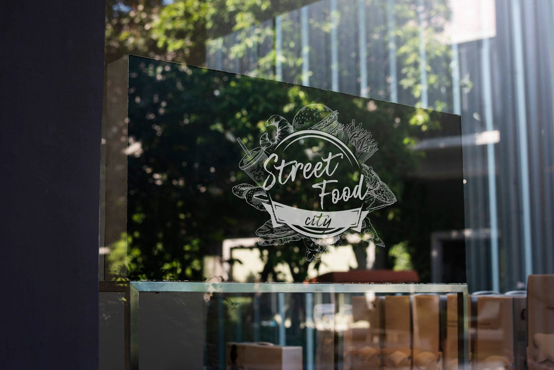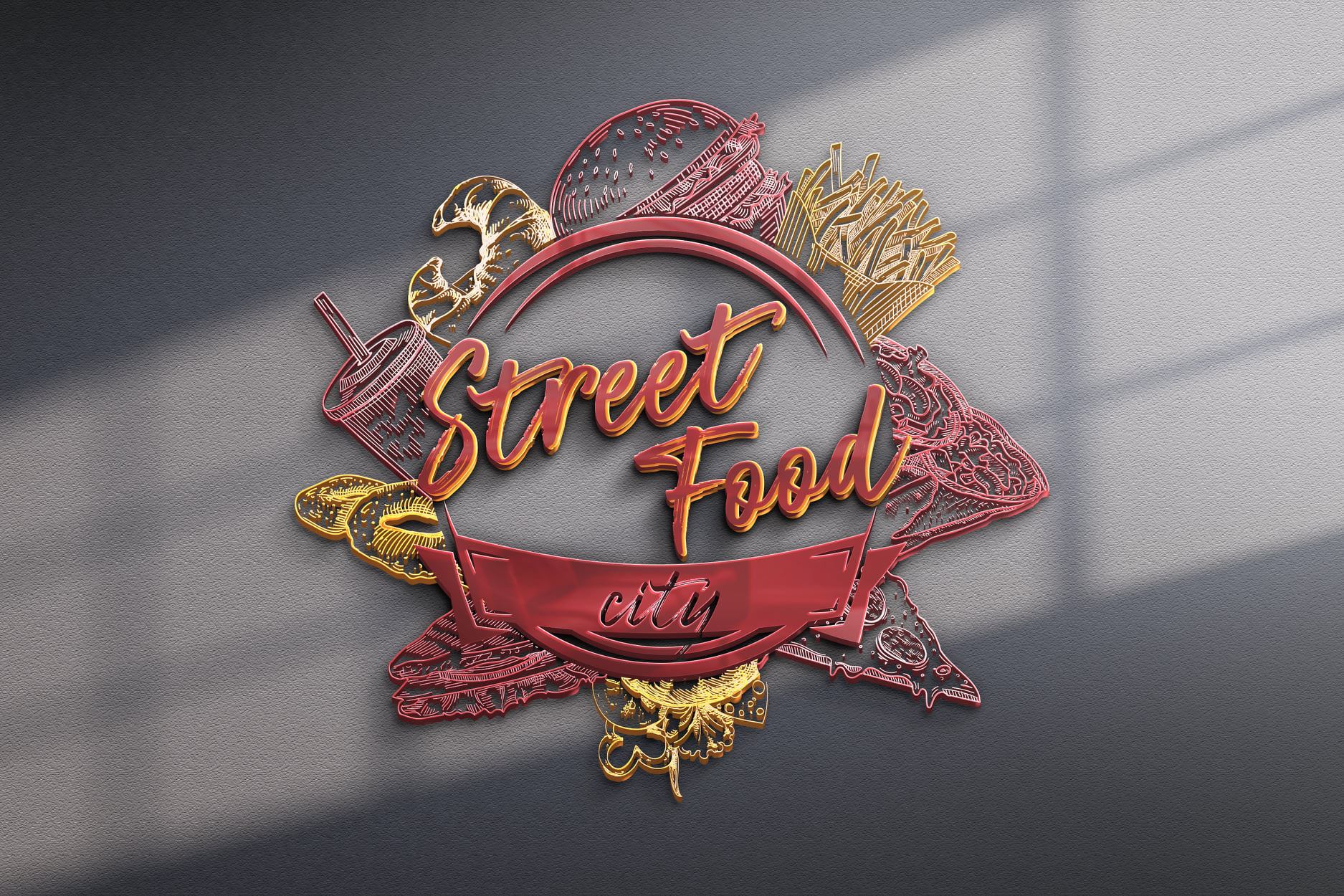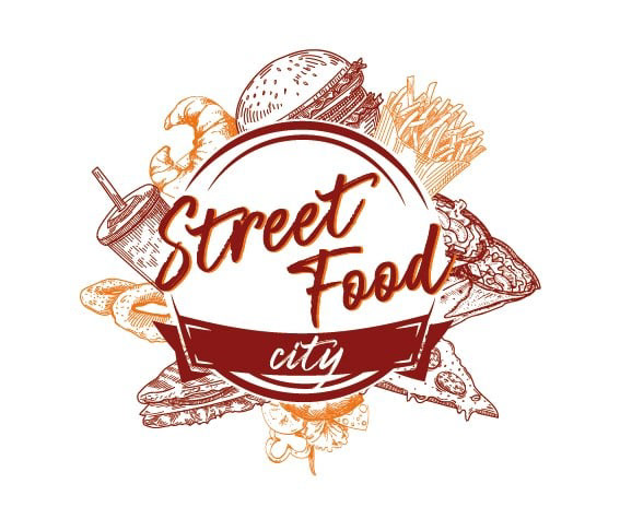 Street Food logo vytvorené podľa predstáv klienta. Základ tvorí v kruhu názov reštaurácie a po jeho okolí sú najchutnejšie jedlá v ponuke